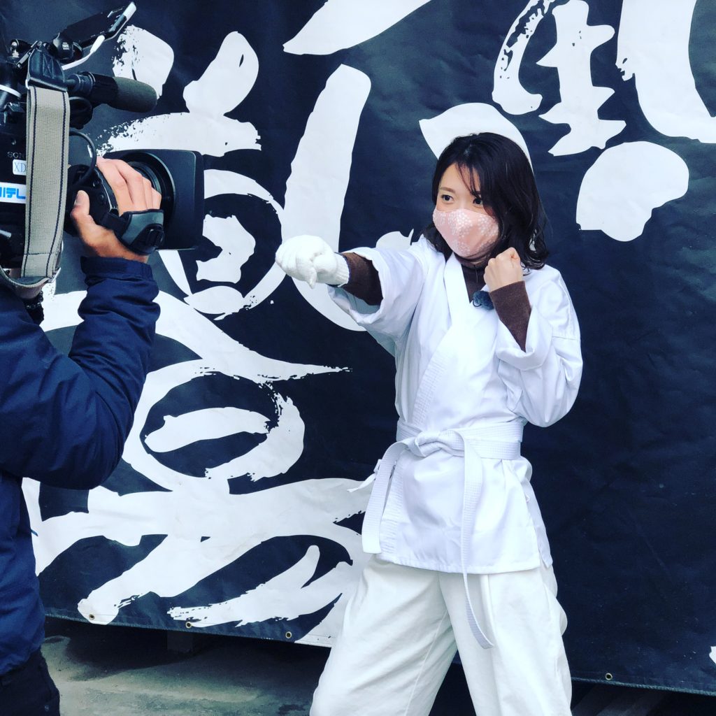 情報番組の旅情報のコーナーで工場見学と瓦割り体験を撮影いただきました。